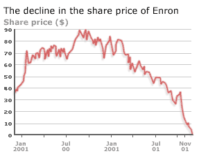 The furore caused by Bethany McLean’s article, as well as prophecies of impending doom made by noted short-sellers including Jim Chanos, meant that Enron’s share price in 2001 plunged into freefall.