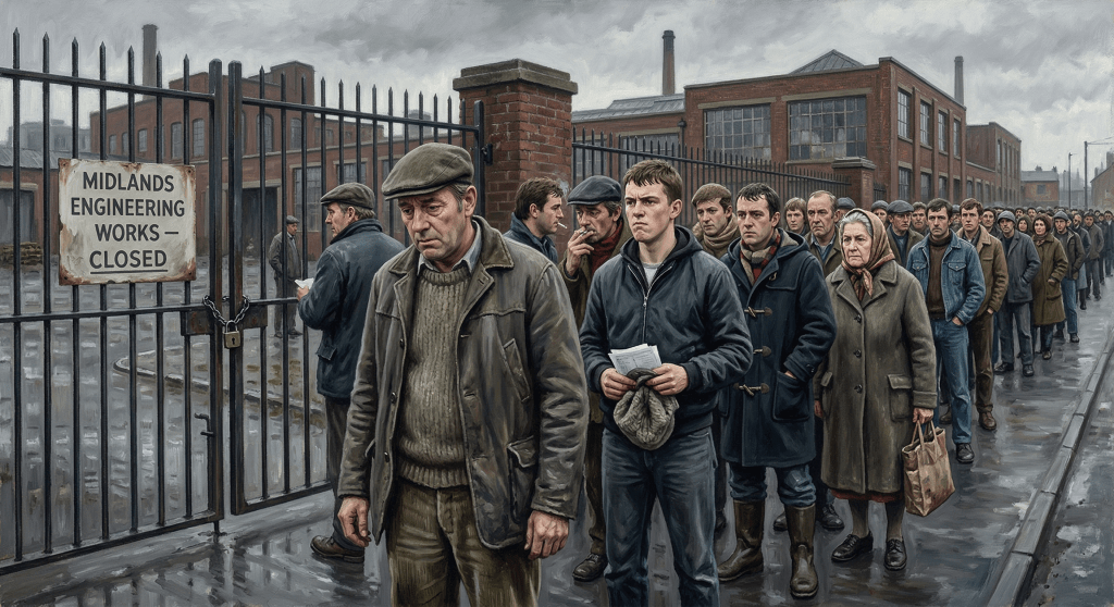 Most catastrophic of all was the destruction of the coal industry. In 1981, the coal industry employed 229,000 men in English and Welsh coalfield areas alone, accounting for almost exactly one in four of all male jobs in these regions . By 2005, the privatised industry employed fewer than 7,000 in total, of whom only 4,000 worked at the eight remaining collieries . Between 1980 and 1994, more than 200,000 miners lost their jobs—a reduction of approximately 90% of the industry’s workforce . The socioeconomic impact was devastating and persistent: displaced miners experienced wage drops of around 40% in the first years after job loss, remaining 20% below pre-displacement levels fifteen years later, with overall earnings falling by 80-90% immediately after displacement .